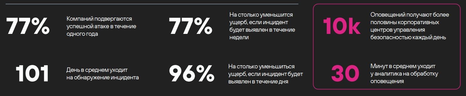 Время обнаружения и нейтрализации инцидентов играет ключевую роль в обеспечении ИБ.